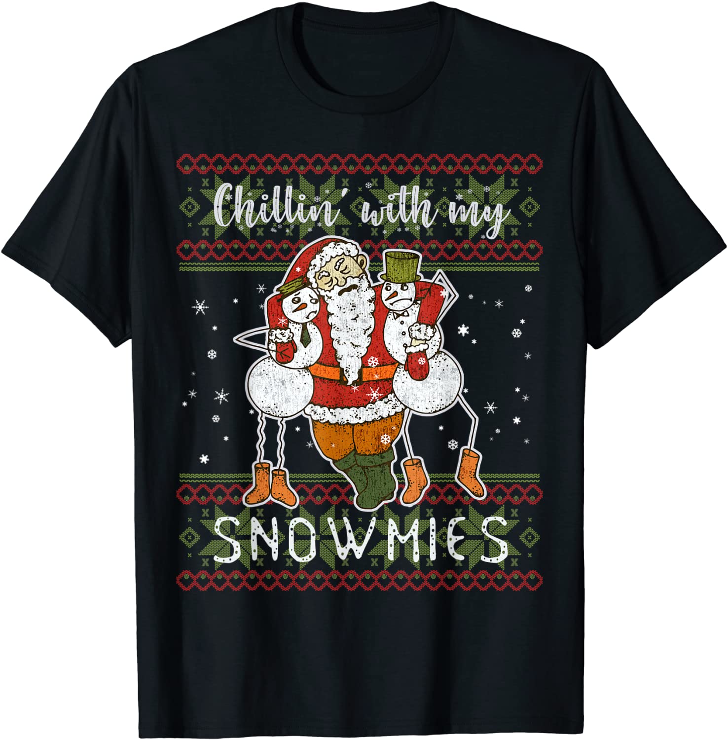 T-Shirt Chillin With My Snowmies Drunk Santa Ugly Christmas Sweater